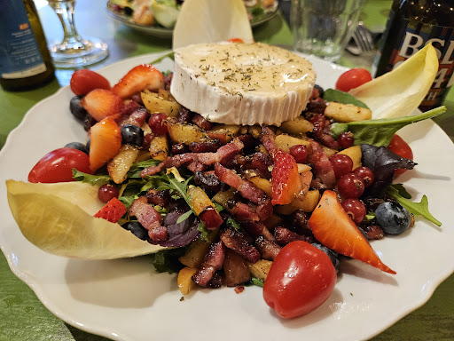 Read moreThe most incredible salads. Huge affairs with locally sourced ingredients. We had fresh fish, local cheeses and homemade bread. The staff had great banter and we enjoyed trying our French with our friends translating. The wine and beer selection was great (again with some recommendations) and they helped us choose food that was safe for the baby. The local speculoos tiramisu dessert was...