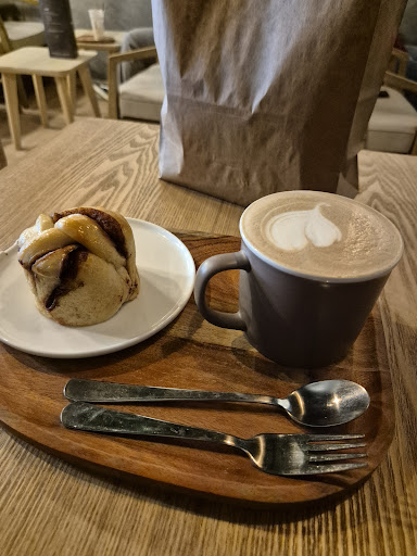 Read moreWith my limited English was able to order. Very attentive staff, serve your order to your table. They even tried to fix the wobbling of my table. The cinnamon bun was excelente and the moccaccino was very tasteful, good touch of espresso. Will come back if in town. Very centric place. Full of young adults, must be an university nearby. To the back it...