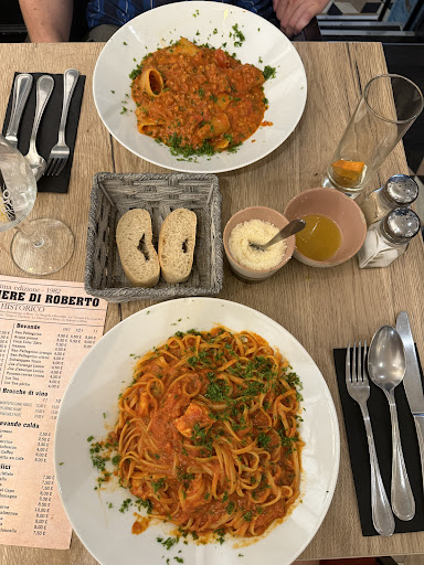 Read moreSympathique restaurant, le service est trĂšs bon, les serveuses n'arrĂȘtent pas pour satisfaire tout le monde. Nous avons pris le mĂȘme plat tortellacci al tartufo dans ses deux dĂ©clinaisons l'un avec l'autre sans chair Ă saucisse Italienne. Il faut clairement privilĂ©gier la version avec qui a beaucoup plus de saveur. Ce qui me choque toujours c'est celle volontĂ© de mettre du persil (ici au moins il est frais) sur les pĂątes, cela n'apporte rien que du contraire cela laisse un goĂ»t qui ne se marie pas particuliĂšrement bien avec celle-ci. Les tortellacci sont fourrĂ©s avec une crĂšme Ă la truffe et on retrouve aussi un peu de truffe finement coupĂ©e sur le plat (bon point cette fois). La sauce dans l'assiette est plus gĂ©nĂ©reuse aussi dans la version avec saucisse. Par contre le pain mis Ă table n'est vraiment pas trĂšs bon, il est un peu trop sec et manque de saveur ce qui lui donne une impression industrielle. L'apĂ©rol Spritz est vraiment trĂšs lĂ©ger en ApĂ©rol on se rapproche plus de la limonade, dommage aussi, ce n'est pas le meilleur que j'ai goĂ»tĂ©. La terrasse est sur des places de parking et donc Ă front de rue, il faut le savoir si vous comptez rĂ©server pour manger en terrasse. Donc je recommande, mais Ă force de dĂ©couvrir beaucoup de restaurant on devient plus exigeant, c'est pour cela que j'ai...