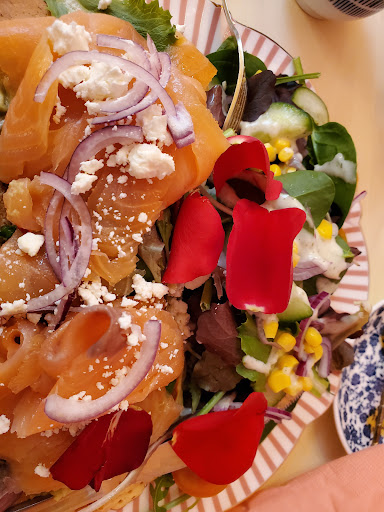 One of my colleagues said to meet him here fir breakfast (which turned into lunch because he was very late), I thought it was a wind up. Appearance in this case can be very deceiving. Everything is "Pink" when we went in, it was just as you could imagine there were two girls at one table with a cat on a lead! I like cats .. But the service was great! And she spoke some English that helped me and my Portuguese buddy. Now the main event, the food! How can I describe this, You taste buds will love you forever. I had smoked salmon soft cheese herb bagel, but thus was huge! Salad fruits and small pickles... seriously there was so much I could not finish it, and I love my food. Amazing place, amazing service for Mons. Lovely people. When in Mons you have to visit...