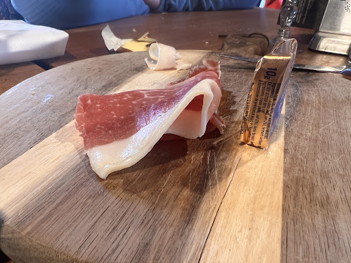 Read moreNourriture très bonne Pour une table de 9, faut demander du pain plusieurs fois pour avoir au moins un petit pain par personne … Réflexion du personnel : on commande une entrée dans l’attente du plat et on nous dit : je vous réserve pas une table pareille juste pour une entrée … Planche de jambon, les tranches trop épaisse Entrée de sardines dans une boîte sans assiette Entrée terrine servie directement dans leur bocal d’emballage … pour ça on va au Lidl ! Magnum de champagne même pas frais On n’a même pas pris de plat, 2h pour avoir la serveuse après l’entrée !