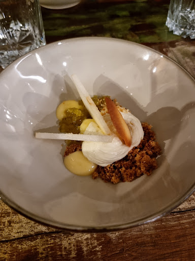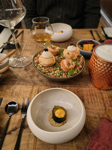 Une expérience unique. C’est un endroit chaleureux avec une cuisine gastronomique extraordinaire. Amateurs de belles découvertes, nous avons été surpris ! Ophélie venait nous expliquer la provenance et la préparation de ses plats cuisinés, elle veillait à ce que nous apprécions. Sa cuisine est raffinée, des saveurs d’ailleurs… Nathan, lui, s’occupait de nous, discutait et nous racontait ses anecdotes. J’étais un peu retissante car j’aime passer un moment seule avec mon compagnon, mais je vous avoue que les hôtes sont tellement chaleureux, bonne ambiance et très gentils que je ne regrette absolument pas cette soirée. Il n’y a pas un moment où je me suis sentie « envahie », au contraire. Là-bas, vous aurez l’impression de manger un repas gastronomique chez de bons amis, dans un cadre bienveillant et sans prise de tête. Nous ne les connaissions pas, et ils on su faire de cette soirée, un souvenir mémorable. Ah oui, j’oubliais, nous avions peur de ne pas avoir assez niveau quantité et finalement, arrivés au fromage, nous étions remplis. Gastronomique ne veut pas toujours dire « peu dans l’assiette ». Vous en aurez pour votre argent. Encore...
