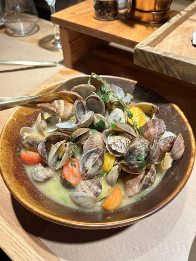 A very nice experience! a charming little restaurant and a lady owner who listens to her customers. We were seated on the terrace and were served very nicely! The dishes followed at a good pace. Bouchot mussels are excellent! eggplant with its delicious hummus! “Alumette” French fries…a good match! and the giant prawns garlic sauce , very fresh lacked a little taste..but served superbly! A different kind of cuisine where I will...