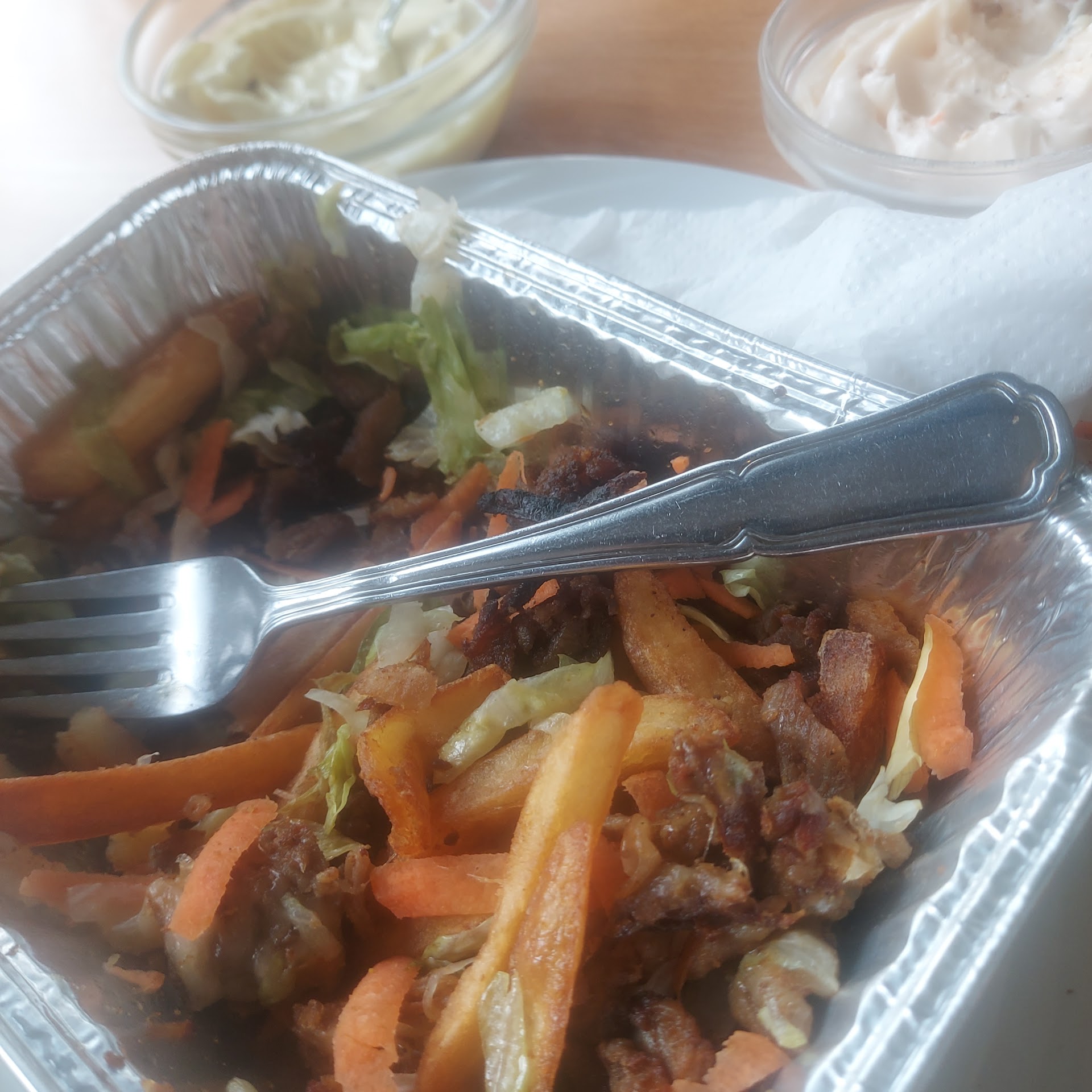 Read moreDe slechtste kebab schotel die ik ooit at. Het vlees is alvast niet het vlees dat je verwacht te krijgen. Grote lappen gehakt met ajuin in verwerkt. De salade overgoten met een vieze soort frituurolie, de frietjes zijn plat, de falafel is ongekruid en proeft naar bloem. Ik heb zelfs in arme landen nooit zo een slechte...