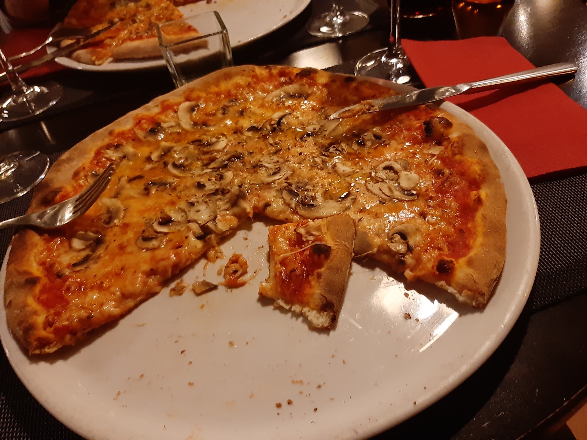 Read moreWe aten hier op een behoorlijk drukke vrijdagavond. Dan betaal je de pizza’s 6,5€. Zelfs voor hun oorspronkelijke prijs, zit je hier heel goed qua prijs/kwaliteit. De pizza’s zelf zijn behoorlijk groot en met ruim voldoende toppings. Mijn pizza werd initieel vergeten maar dat was toch snel rechtgezet. Immens authentiek voelt de sfeer niet aan maar voor de 21€ die wij betaalden, kan je moeilijk het meest uitgebreide decor verwachten. Het personeel was gehaast, er was ook echt veel volk maar toch vriendelijk. Wij komen zeker...