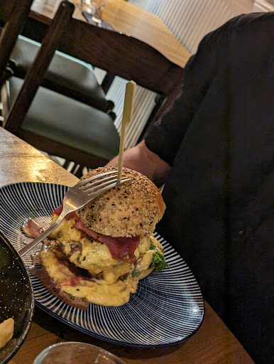 Read moreBel endroit,avec de belles pierres. Charme de l’ancien.joliement décoré. On s’y sent bien,malgré une musique un peu forte. Nous sommes dimanche,le restaurant est bien rempli. Le service fait ce qu’il peut. Nous commandons une planche charcuterie-fromage. Malheureusement nous cherchons encore le fromage.. Deux lamelles de Vieux Bruges (semble-t-il)sur un lit de charcuterie diverses et cornichons. Deux tranches de pain qui semblent appetissantes mais que mettre dessus?!?,pas de beurre,pas une tranche de paté..quel dommage ! Nous avons attendu 1 heure entre la planche et l’arrivée des plats..pas grave,nous sommes en famille. Ceux ci arrivent,ils sont froids 😔 Tous les convives ne sont pas servis en même temps,c’est agaçant au bout d’une heure d’attente. Les Linguine carbonara préparés dans la meule de Parmesan sont une vaste blague. Servies avec foison de fines tranches de lard avec un petit goût de brûlé,et linguines qui baignent dans le gras du lard. Bien sûr,comme le fromage de l’entrée,je cherche encore le goût du parmesan. Pour finir,et sur les conseils d’un ami déja venu,je me tourne vers leur spécialité: L’irish coffee. Mais en jetant un oeil sur la carte,je constate que le prix pour « l’irish de base » est a 12€ 😳🤔 Non,vous exagérez! Je n’ai pas tenté l’expérience,au vu du début de mon repas,et repars déçu.