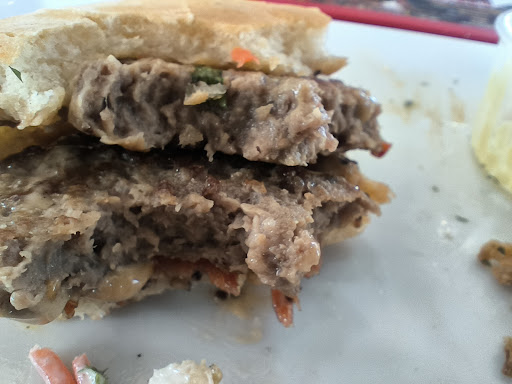 Nous sommes allĂ©s essayer cette friterie Ă thĂšme et avons choisi le menu assiette avec hamburger pur bĆuf. DĂšs la premiĂšre bouchĂ©e, nous avons senti qu'on Ă©tait trĂšs loin du pur bĆuf, le steak s'arrachĂ© Ă la main en bloc lisse, laissant apparaĂźtre de petites boules de gras, il n'Ă©tait pas grillĂ© et semblait ĂȘtre cuit Ă l'eau. En demandant de suite au garçon si c'Ă©tait bien du pur bĆuf, il nous a d'abord dit que c'Ă©tait le supplĂ©ment steak 175 gr au lieu de 100gr qui l'Ă©tait. AprĂšs consultation de sa carte il s'est corrigĂ© et nous a confirmĂ© que c'Ă©tait bien pur bĆuf. J'ai demandĂ© qui en parle aux cuisines, ce qu'il a fait. Aucun responsable n'est venu voir Ă notre table ce qu'il en Ă©tait, et la salle Ă©tait remplie Ă peine Ă 1/3, donc pas sur le coup de feu. MĂȘme chose Ă la caisse, pas de responsable. Ces steaks Ă©taient gras, avait un gout de congĂ©lateur, semblait cuit Ă lâeau. Ma femme a laissĂ© les steaks dans lâassiette, moi-mĂȘme je nâai mangĂ© que la moitiĂ© et je les digĂšre toujours 6 heures aprĂšs. La table Ă cotĂ© de nous, on a remarquĂ© que 3 personnes sur les 6 nâavaient quasiment pas mangĂ© leur steak mais bien le pain. Les frites, 2/3 dâentres elles faisaient Ă peine 2 cm et sĂšches. Les « 2 cuillĂšres » de salade Ă©tait ridicule, les carottes, nature avaient un gout de vinaigre, carotte en boiteâŠ. Les boissons, pas de Kriek, pas de Fanta, on aurait dit un sketchâŠ. Pas de stock en fait. On nây reviendra pas. On ne le...