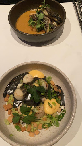 Et on peut dire que tout est vraiment bien réalisé. Les matières sont travaillées et les assiettes sont très joliment dressées. Il en ressort une véritable farandole de couleurs et de saveurs. Et c'est d'ailleurs déjà le cas dès la réception de la mise-en-bouche.