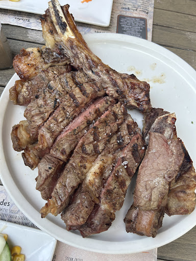 Heureusement qu’on était entre amis avec une bonne ambiance et qu’on quittait régulièrement la table pour aller se rafraîchir pour supporter la chaleur étouffante mais notre repas aurait été plus supportable dehors sur l’une des nombreuses tables disponibles …