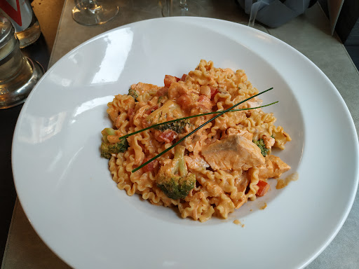 Read moreSi vous faites escale à Namur, ne manquez pas cette adresse. C'est une brasserie qui ne manquera pas de vous ravir tant par sa localisation (n'hésitez pas à demander une table avec vue sur la Sambre!), sa déco contemporaine sympa, son service impeccable (serveurs et serveuses au top !) que sa cuisine délicieuse, généreuse et très bien présentée. Oui parce que franchement, deux croquettes de crevettes avec un quart de citron et un zeste de persil perdus dans une grande assiette blanche, c'est le lot de beaucoup de brasseries... Mais pas de ça ici ! Ici, vous aurez droit à une belle assiette, bien garnie, soigneusement dressée et avec un petit légume dans chaque assiette, y compris celles des enfants ! Nous avons même eu la surprise de recevoir une petite mise en bouche délicieuse et raffinée en attendant nos plats. Non, vraiment, ne loupez pas...