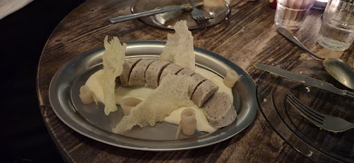 We came here on a rainy Wednesday night without reservation. The restaurant just across the street recommended to go here, as they both are befriended and share a young fusion approach with different asian influences. The menu is small and the dishes are meant to share. We ordered four plates for two persons and came out completely satisfied. The food is great, it gives your mouth something to think about. Like, the white sausage with Ginger, Cauliflower mousse and pears was a mind blowing interpretation. The Gnocchi with Mimolette and Gochujang scored high, too. On a night, where the owner had to cook and run the service alone, everything went super good. Nice wines, nice people, neatly curated interieur. Was about 40 Euro per Person including drinks, was reasonable in my opinion. And yes, the water comes for...