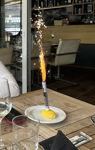 Reservation for 13.00 arrived on time , 13.05 menu 13.10 order taken, drinking apero 3x during the apero they tried to serve the wine, obviously we were still drinking apero, 1st plate arrived,, within 10mins of ordering, from a client point of view we had to inform the waiter to slow down if not we would have the 1st and 2nd plate with in 30mins, the staff constantly passing and staring to see if you have finished your plate, the food brasserie style but not top, lucky we had bread (which we had to ask for) to make up for the small portions the wine way over priced, if your two people looking to have a nice dinner on a Sunday forget it, totally disappointed, but still left paying a bill of 120€ for...