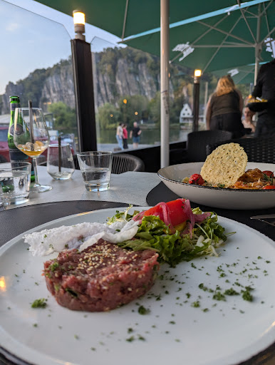 Cadre exceptionnel, terrasse à tomber… rien à dire : siroter un verre face à la Meuse, c’est déjà un petit moment de bonheur en soi. On est bien, on respire, on oublie presque qu’on va bientôt hypothéquer la maison pour une salade 🥑.