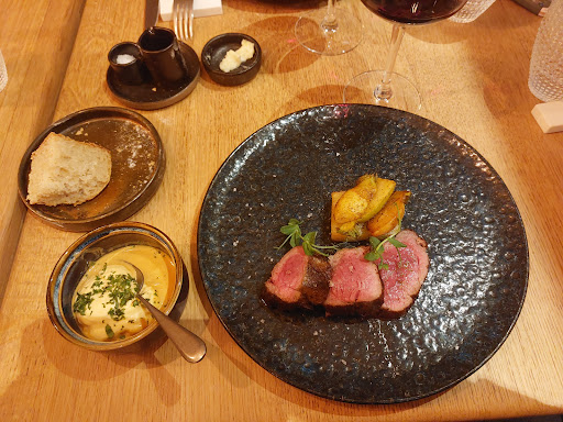 Formule unique avec un menu 5 services...un dĂ©lice gustatif de la premiĂšre bouchĂ©e Ă la derniĂšre, parfait. LĂ on sent vraiment le travail de vrais professionnels qui aiment et maĂźtrisent parfaitement leur job avec un vĂ©ritable dĂ©sir et plaisir de le faire partager, ça devient de plus en plus rare pour ne pas le souligner. Joli et subtil dans l'assiette, cuisson parfaite, assaisonnement idem, lĂ©ger et aĂ©rien, vins excellents, bravo les chefs! Cosy sans ĂȘtre guindĂ©, service trĂšs aimable, maitrisĂ©, sans chichi ni courbette inutile alors que nous sommes bien dans un resto gastronomique. Les chefs viennent tour Ă tour Ă table pour terminer l'assiette et prĂ©senter sympathiquement le contenu de l'assiette. On sort de lĂ avec un grand sourire, en ayant parfaitement mangĂ©, suffisamment mais sans aucune lourdeur au ventre. Vivement la...