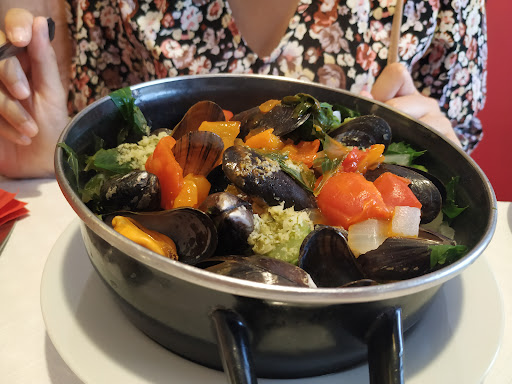 This place was recommended by the hotel staff as a good, Belgian restaurant. it is only a short walk from the hotel. as we read the menu, outside, a local woman came out for a smoke. She told us how good it was. we asked, did she work there? 'No, but I eat here every week; the food is so good.' Their signature dish is mussels - which we all loved - so, though they did other things, we chose a mussel dish each. Were they good or were they good? The food was fabulous and plenty of it. We were, certainly, replete...