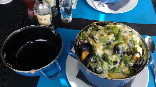 A dire qu'on a choisi par rapport aux Avis oĂč manger des moules et on a fait pas mal de km juste pour manger des moules et frittes en Belgique. Service pessimissime, si on veut des frittes en plus (payant biensur) on vous les sert pas et on vous reponds Meme mal (serveuse aux cheveux roux et noir). Au final on a pris uniquement des moules avec l'accompagnament inclus (selon facon d'en avoir ) des frittes. Ces dernieres etaient bien deceventes produit congelĂ© et servi froid. Je pense que lĂ friterie en face fait nettement mieux. Les frittes c est belges. Et pour un restaurant Ă ces tarifs extra (Meme le Lux est moins cher ou entout cas meilleur qualitĂ© pour le meme prix), on s attends Ă des frittes fraiches et pas congelĂ© et servie froide. Attention, si vous voulez du pain il y en a pas du tout (pour un resto assez grave quand Meme ne pas avoir un petit bout de pain) si vous voulez de la mayo ou autre sauce c'est payant (pire qu'un mcdo bientot) et je trouve inadmissible 18euro pour 2 croquettes de crevette, produit congelĂ©. Et pour en Finir 50cl d eau plate coute plus de 50cl de biere mdr đ Les moules Niveau cuissant c etait ok, rien Ă dire, sauf que c est vraiment des moules cuites nature et puis juste rajoutĂ© la sauce, effectivement les moules ne sentaient de rien (lĂ aussi plein d'ail congelĂ© dessus). Par contre 500gr de celeri qui les couvraient peut importe la sauce choisir. La seule personne courtoise et souriante en salle c'etait le barman. On etait parti pour manger une gauffre et dijestif mais finalment on y a renoncĂ© Ă cause du service qui nous donnait pas envie de...