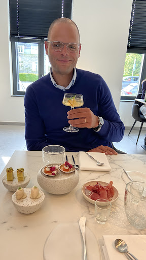 Belle découverte gustative 👌Nous avons opté pour le menu et n’avons nullement été déçu. Les plats étaient succulents. 👏 au chef pour cette cuisine raffinée et le choix des épices surprenant mais tellement goûteux. La cote de 4 ⭐️ est largement méritée mais une bonne soirée ne se limite pas qu’au repas bien qu’il y contribue en grande partie. Je m’explique : À notre arrivée le sommelier nous signale que nous mangerons en terrasse et je lui réponds que nous y prendrons l’apéritif mais souhaitons dîner à l’intérieur.Il n’a pas semblé prêter attention. Durant l’apéritif nous sommes envahis par les guêpes et je lui réitère ma demande de dîner à l’intérieur (vu que je suis allergique à leur venin) mais là encore pas de réaction ce qui m’amène à demander au chef de pouvoir quitter la terrasse. Ce dernier accepte sans problème mais le sommelier ne partage apparemment pas son avis et signale qu’il fera brûler du café (qui n’a pas voulu prendre...) et place une bougie à la citronnelle à côté de notre table sans succès car les 🐝 continuent à nous importuner dumoins jusqu’à la tombée de la nuit. Viens le moment où le sommelier me fait goûter le vin blanc accompagnant le poisson. Je lui dis qu’il est bon mais pourrait être plus frais. Ce à quoi il répond que c’est le vin du goulot de la bouteille et qu’il sera plus frais lorsque mon verre sera servi 😲. Que nenni mais il s’en est retourné sans attendre ma réaction ou me demander ce qu’il en était. Ensuite il fait goûter le vin rouge à mon époux qui rapidement enlève une guêpe de sa bouche. Heureusement elle avait dû séjourner un certain temps dans la bouteille et était morte car je n’ose pas m’imaginer ce qui se serait passé dans le cas contraire. La réaction du sommelier a été de la jeter par terre sans aucun commentaire ni excuse. Bref cette personne commente à la perfection les vins présentés mais son écoute du client est inexistante. Une dernière petite remarque : après l’entrée le set de mon époux était jonché de miettes et j’ai pensé qu’avant de déposer les assiettes suivantes on les enlèverait mais non il a poursuivi son repas dans les miettes... Tout ceci pour vous dire que bien qu’ayant dégusté un succulent repas nous n’avons pas pour autant passé une...