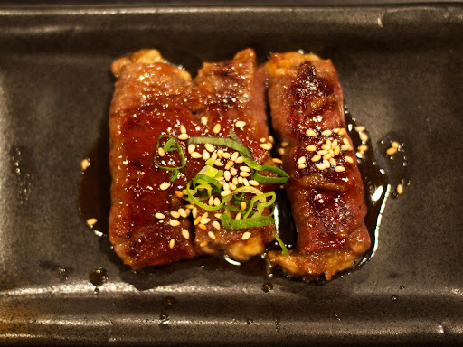 Read moreHier nous étions 4 a essayer ce resto Asiatique .Bien que situé en sous sol , le cadre est correct mais j'y ajouterais un peu de déco au centre . Les passages entre les tables sont hyper larges et nous permettent aussi d'être un peu plus d'en l'intimité . Par contre je changerais les lumières pour qu'elles soient plus individuelles que "lumières de cantine" . Pour la grandeur des tables , c'est vrai que c'est correct mais vu le nombre de plats qu'on vous apporte, si elles pouvaient être un peu plus longue , cela permettrait de mettre ces plats plus accessibles et plus en valeur . Pour la nourriture c'est un bien +, c'est pas le haut niveau mais c'est tout à fait respectable .Je regrette peut -être le manque de sauces différentes qui pourraient orner la table et nous projeter dans des saveurs encore plus différentes . Pour le concept de choix des plats qu'ils vous apporteront par phases , c'est une bonne idée , on est un peu perdu au début mais on s'y fait vite . Le personnel vous expliquera avec le sourire comment commander . C'est bien mieux que dans ces restos ou l'on se sert sois -même , dans ces restos là , on n'est jamais vraiment tous à table ! L' Hosaku est donc très valable entre amis et je leur mets donc 4 étoiles pour les encourager .La cinquième...