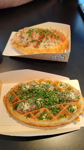 En regardant la carte, peu de choix malheureusement... Finalement, la gaufre est sans plus, pas très grande, la garniture n'était pas bonne... (J'ai pris américain avec l'impression que la viande était crue et pâteuse, mon conjoint a pris butternut, et n'a pas mangé non plus). L'esthétique est original, mais en fait la garniture n'est que au milieu, sur le reste, il n'y a rien du tout, c'est dommage... 9€ pour le peu de garniture, je trouve ça cher aussi. Au final, entre 20 et 30€ dépensés pour ne rien avoir mangé...