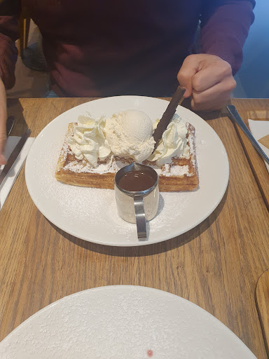 Read moreVery nice waffles. Delicous coffee and not to pricy. We had a waffle with (cold) cherries and whipped cream (6,90 €), a waffle with vanilla ice cream, whipped cream and hot chocolate (7,90 €), a speculoos macchiato (3,80 €) and a very big chocolate milk shake, that unfortunately was a little bit too sweet for me (4,90 €). Can recommend the place,...
