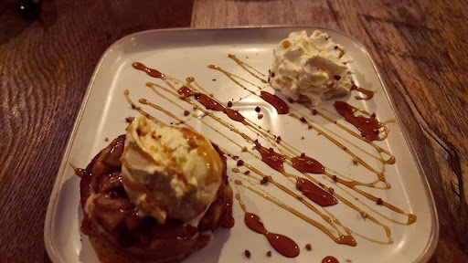 Lovely place, the interior is in a wooden huntinglodge style. The service is awesome and very friendly. The menue marks special items with a heart and even the burgers are available for vegetarians and possibly vegans as well. The food (we had the Tchesté and the Dauphinois Burgers) were some of the best burgers we've ever had. The price is incredible for the ammount of food you get. According to my girlfriend the guy who came up with the idea to use the Dauphinois Gratin as a burgerbun should earn a Nobelprice and a napkin (it is very messy to eat, but we even recieved a bowl with cool and refreshing water to clean our hands). Unfortunately I cannot provide pictures, since the smell and look of the burger has enchanted us to much to resist it more than a few seconds. All in all a must visit in...