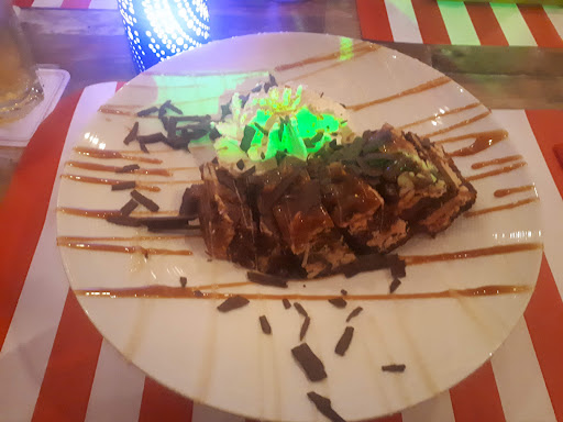 Bediening was zeer vriendelijk en snel aangezien de grote van de groep . Het eten was super lekker en de porties zijn serieus groot ! Hadden een vegetarische persoon mee deze heeft ook een lekker pasta gerecht kunnen kiezen. (veel vegetarische opties op de kaart)