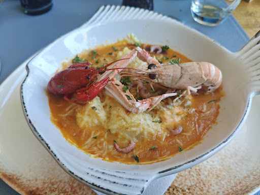 Read moreWir kamen mit Rollstuhl in das Restaurant und wurden sehr gut bedient. Es wurde sofort Platz geschaffen und gefragt ob alles Recht sei. Das Essen war sehr gut - meine Frau hatte den Dreierlei Fisch (sie kommt von der deutschen Nordseeküste und kann dementsprechend guten Fisch beurteilen). Die Filets ließen sich ohne großartige Probleme ablösen und der Garpunkt war optimal. Das Steak meines Sohnes ist medium bestellt worden und wurde genau so geliefert. Eine schöne Grillkruste rundet das Gericht ab. Meine Fischsuppe war sehr lecker und geschmackvoll, mit einer großen Portion verschiedener Einlagen (verschiedene Fische, Muscheln, Krustentiere, Pulpo etc.). Danke für den Tip keine Vorspeise zu nehmen - das Gericht ist wirklich viel (neben dem Teller auf dem Foto, gab es noch eine Terrine zum nachfüllen und ein Korb mit Toast und einem Dip). Wir werden...