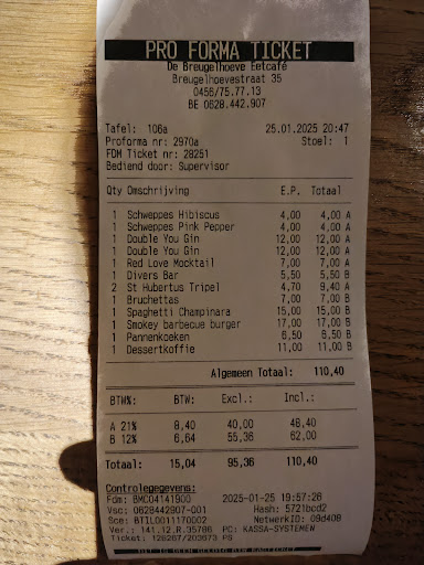 Ze hebben hier de gin uit Wilderen, jawel. Topkeuze. Die mocht wel iets meer in bet glas brengen zoals groter ijs, zoethoutje mogelijks. De hoeveelheid gin was OK(niet overal zo, soms drink je tonic aan meer dan 10euro).