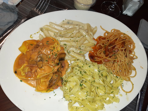 Fawlty Towers goes resto. The waitress dress the table but forgets the cutlery. Water served. Plates arrive still without knife and fork. Btl of wine is served halfway into dinner after reminder. Foodwise, a decent Vitello Tonnato. But please, leave the Balsamico sirop on the kitchen shelve. The Fettuccini tartufata comes with mushrooms.. lacking depth in sauce and totally unsalted. Son wanted a Tiramisu but they never bothered getting around to hand us the desert menu.. the Terass turned out a rather...