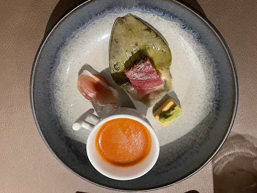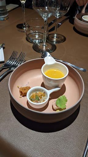 Read moreNous avons pris le menu 5 services avec forfait vins. Les saveurs n étaient pas au rendez-vous, dans l ensemble assez fade sans grande émotion au fur et à mesure des dégustations. Les vins accompagnés avec les plats passaient mais ne sublimaient pas du tout les plats. Une serveuse et un serveur attentionnés, merci pour le petit gâteau demandé et offert à l attention de mon ami. Dommage car nous y étions déjà allés et nous avions beaucoup appréciés. Le cadre reste sympa et calme propice pour pouvoir passer un agréable moment, ce que nous avons passés malgré tout. Peut-être le business lunch proposé à essayer qui sait. Comme la serveuse nous a dit, une critique reste positive pour pouvoir s améliorer. C est pourquoi la note de 3 car nous l...