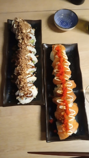 Read moreLa salle est minuscule, nous sommes tous serrĂ©s et il n'y a clairement pas d'intimitĂ© : si vous expliquez quelques chose Ă votre ami/partenaire, vous pouvez ĂȘtre sĂ»r(e) que tout le restaurant l'entend. Il fait hyper froid, on dirait qu'on mange dehors, donc parfois il faut garder son manteau (mais si vous voulez l'enlever, il faut l'accrocher prĂšs de la porte d'entrĂ©e car il n'y a pas de place sur les bancs). Ils utilisent le poisson congelĂ© pour certains de leurs sushis. Il y a clairement trop de riz, les morceaux de poulet sont Ă©normes et mal assaisonnĂ©s, les sauces dans les sushis ont le goĂ»t chimique ou il n'y a pas assez de sauce/cheese dans les sushis. Les noris sont trop durs, les sushis sont mal dĂ©coupĂ©s. Le service est bof, on nous oblige limite Ă mettre du pourboire pour le serveur qui a l'air fatiguĂ©, qui se gratte le nez sans cesse et en plus, on dirait qu'il vient de se rĂ©veiller vu l'Ă©tat de ses vĂȘtements et ses cheveux.. Les cuisiniers travaillent avec leurs vestes, certains plats sentent le frigo et tout ce qu'il y a lĂ -dedans (sĂ»rement pas emballĂ©). Les livraisons se passent quand on mange (pourquoi pas faire ceci avant le service), du coup la porte est grande ouverte, les livreurs poussent les chaises pour passer, il y a du bruit, le serveur doit tout vite ranger, du coup nous, on doit attendre qu'il termine pour venir nous servir ou dĂ©barrasser. En plus, on voit que le poisson qui arrive est congelĂ©, c'est dommage. Sinon, je mets 3 Ă©toiles car c'est pas mauvais, on mange bien (mais il faut bien choisir ses sushis hein), les portions sont gĂ©nĂ©reuses, c'est pas hyper cher et Ă prĂ©sent je n'ai pas encore...