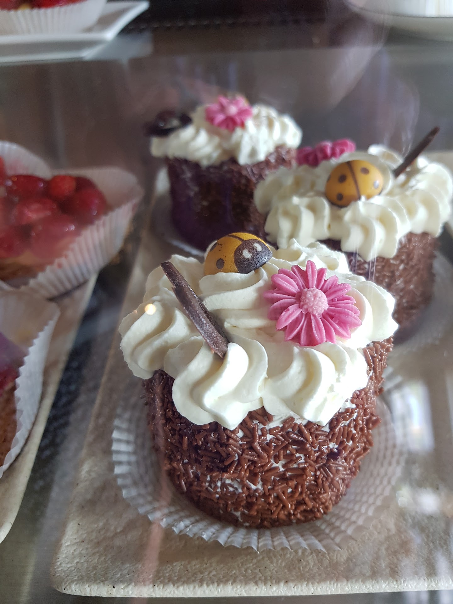 Toller Cappuccino aus der SiebtrĂ€germaschine, leckeres GebĂ€ck, freundlicher Service und nette GĂ€ste. Nette Lage, sehr gepflegte Terrasse und hĂŒbscher Innenraum.