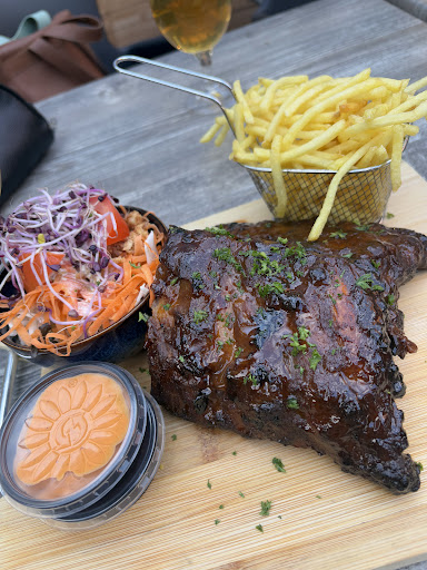 We kregen een best wel uitgebreide kaart waar we wel wat hulp bij nodig hadden. Gelukkig kregen wij een ober die absoluut verstand van zijn kaart had. De focus van dit restaurant ligt op een door hen zelf gekruid butteraged en dryaged, waar je per 100 gr een bedrag voor betaalt. De uitleg was echt heel uitgebreid en mijn man koos voor de ribeye dryaged en ik koos voor de butter aged entrecote. Omdat ik een maagverkleining heb gehad heb ik geĆÆnformeerd naar de mogelijkheden voor een aangepaste hoeveelheid, daar konden ze qua vlees niet veel rekening mee houden omdat ze standaard 350 gram snijden, maar ze konden wel een dun stuk afsnijden. Ik heb daarom alleen het vlees laten komen zonder aanvulling van frietjes of aardappelkroketjes, dit was mogelijk. De kinderen kozen van de uitgebreide kinderkaart voor hertog-grass ( steppe gras met een andere naam). Ik vond het jammer dat er bij zo n uitgebreide focus op vlees niet doorgepakt werd moet een bijpassende wijnkaart. Toen ik vroeg naar bijpassende rode wijn, kon ik alleen uit huiswijn kiezen, daar valt nog wel wat winst te behalen. Het vlees was echt perfect! Heerlijk gebakken, goed van smaak.. echt helemaal top! Ook de kinderen en mijn man waren enorm tevreden. Restaurant qua eten echt een aanrader, de kaart is uitgebreid en de uitleg is heel fijn, alleen nog een wijnkaart die het lekkere vlees complimenteert, dan is het zeker een dikke 9! Bedankt voor de goede zorgen, als we weer eens in de buurt zijn, komen we zeker...