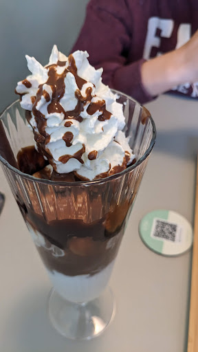 Bestellen en afrekenen aan tafel en contactloos zonder menselijk contact, waardoor we dachten dat het niet enkel eenvoudig maar ook sneller zou gaan maar toch 10-15 min op ijs en koffie moeten wachten. Koffie veel te zoet met karamel. Milkshake pistache was goed, maar slagroom en chocolade is overbodig. Ijs in potjes zeker lekker, maar beter echte bollen apart scheppen waardoor de smaken afzonderlijk goed tot hun recht komen. Het concept van coppa is niet zo nice, want ik proef meerdere smaken in 1. Liever dus ijs op een schaal en geen mix door elkaar geplat in veel te kleine potjes :(. Er zitten heel goede smaken tussen. We komen zeker terug.