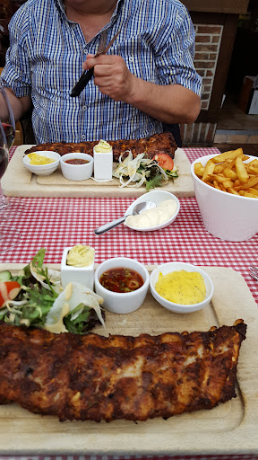 Read moreAls eerste: geweldig vriendelijke mensen! Fijne ontvangst, no nonsense; je voelt je prima op je gemak en welkom. In dat opzicht dikke PLUS! Daarom vind ik het een beetje vervelend om het volgende te schrijven. Ik kom hier al van medio jaren 90. De smaak en kwaliteit van degenen die het toen uitbaatten, is helaas niet te evenaren, maar dat zal waarschijnlijk meer aan mij liggen. Het maakt het niet slecht, maar aan mijn verwachtingspatroon wordt niet voldaan. Zoals iedere bakker z'n eigen broodjes bakt, kookt iedere kok op z'n eigen wijze! Man en ik hadden ribbetjes met gepofte aardappel en zoon de hamburger. Zoon was zo onder de indruk dat hij liefst nog een portie had gehad! De ribbetjes waren goed gekruid en lekker! Alleen miste ik een potje kruidenboter om over de ribbetjes te doen. Jammer was dat het laatste dikkere stuk van de ribbetjes nog een beetje rauw was. Omdat het over een klein stukje ging, heb ik daarover niks gezegd. Toch zou dit niet mogen gebeuren. De gepofte aardappel was een ander verhaal... De donkere kleur verbaasde me en de eerste hap deed me bevestigen wat de kleur deed vermoedden. Aangebrand. Ik ben zelf geleerd kok en vermoed gekookt en aangebrand in de kookpan en te lang in water gelegen waardoor de kleur en aangebrande smaak in de aardappel getrokken was. Niet opgegeten. De salade voor mijn gevoel net iets te grof gesneden. Ijsberg sla leent zich uitstekend om in fijne reepjes gesneden te worden, maar ook dit is weer een kwestie van smaak en keuze van de chef! Verbaasd was ik toen zoon en man zeiden dat de sla dressing had. Waarschijnlijk bij mij vergeten, maar ook dat geen probleem. Met wat zout en peper ga ik los als een Vlaamse reus op sla 😂; dus niet gemist. Prestentatie was mooi. Precies zoals ik het verwacht! Spijtig dat ik zo snel niet vind óf en waar ik een foto kan uploaden, want over presentatie mag zeker niks verkeerd gezegd en mag zeker gezien worden! Dikste pluspunt is op dit moment de enorm goede en vriendelijke ontvangst. Ik kan en mag me niet bemoeien met hoe de chef zijn of haar eten bereidt, maar ribbetjes die een uur in alu folie zacht gegaard hebben in de oven en warm gemaakt en gekleurd worden op de grill zijn altijd perfect. Voor opdienen bestreken worden met een mengeling van honing, water en olie, geeft een prachtige laklaag. Dat geserveerd met een schijfje kruidenboter is een gedicht. Ik hoop dat mijn kritiek niet negatief opgevat wordt, maar als puntje/tip om over...
