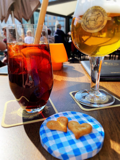 Read moreUne des plus agréables brasserie d'Ostende située sur Mijnplein. Cette place présente deux avantages : elle est un peu moins assaillie de touristes que la place principale et elle est dès le matin exposée plein soleil. Les habitués de la ville ne s'y trompent pas et cette terrasse (dès que le soleil est présent) ne dessemplit pas et il n'est pas rare de voir les clients patienter debout qu'une table se libère. La carte est classique pour ce type d'établissement et exécutée correctement. Les prix sont raisonnables surtout si vous optez pour la (toute) petite restauration avec un croque monsieur à 5€ !! Une mention toute particulière pour l'efficacité et l'amabilité du personnel qui apporte une étoile de plus (j'avais mis 3). Ce qui est sûr, vous ne serez pas déçu. Bravo aussi pour les petits parasols individuel et le petit verre de gaspacho offert en amusé...