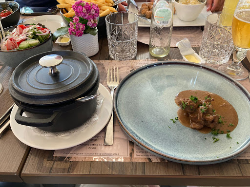 Spent a few days in Oostende with my mom. And we wanted to have a dinner together, so I found this amazing place on google maps. We were absolutely satisfied with everything. The restaurant is really nice, cosy, had a warm feeling to it. The service was superb, both waiters (one who started to serve us, was actually finishing his shift, and came to inform us that his collegue will take over further on) both were absolutely informative about local food, drinks, specialities. Both also english speaking, professional, and really really friendly. Food was delicious, nicely served, portions were more then decent, and price was also more then fine, I was thinking it will be way more expensive. For a few drinks (schweppes, two beers, one aperitive), and two full meal (soup, and main dish) we had to pay around 50 euros, which is in my opinion absolutely amazing. Definitelly my reccomendations, will visit again if I stumble upon...