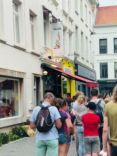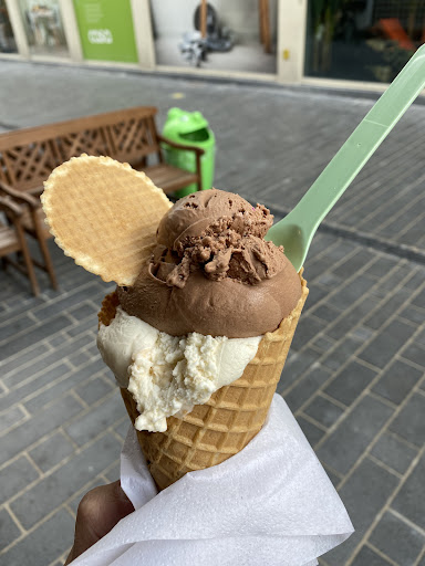 colors of ice creams are weird (i.e. pistachio, strawberry etc.) stracciatella had chocolate flakes that were small enough not to have any taste malaga had the same taste as fior di latte (I only found 1 raisin and there was barely any taste of Rhum) servers touch cones with their barehands, and then collect cash payments. No hands cleaning/wiping involved anyhow. What the heck?! I ended up throwing away my cone, I was not willing to eat what someone touched with dirty hands. Big portions, but I am not sure it adds any value as there's not point to get an ice cream there. I am not familiar with the "regular" ice cream shop in Ostende; I strongly doubt this is one of the best...