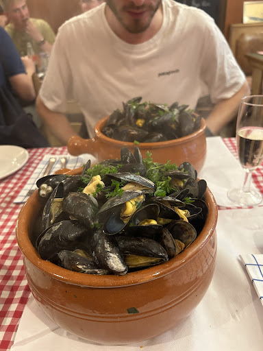 Read morePetit resto à "l'ancienne "très sympa..une dizaine de tables couvertes de nappes à carreaux rouges et blancs .(resto deja rempli à 12h30.. il est impératif de réserver.)une patronne accueillante..et sympa... dans les deux langues...bref bien loin des restos plus" huppés "situé tout le long du port et de la digue d Ostende..côté cuisine une carte(sur un tableau noir )simple..et courte..2 plats de poisson ,un steak..et les moules dans deux préparations.. comme apero on a commandé les mini( très mini )croquettes de crevettes (3 pour 5,50) un peu cher...mais excellentes et a recommander pour les amateurs... ensuite nous avons commandé... 1 steak frites (23 euro)et une moules marinière..a 25 euro)steak cuit comme demandé ,tendre..mais pas beaucoup de goût (sans doute du bbb) belle portion de moules (pas des jumbo,mais sans doute le calibre "super ")un peu plus de légumes dans la préparation arraient été les bienvenus ...en donnant plus de goût à la préparation ...j ai malheureusement "croqué "plusieures fois du ..sable..preuve que quelques passages supplémentaires dans l eau aurraient été nécessaires pour bien les nettoyer....dommage Il faudra qu on y retourne une 2ème fois pour donner une appréciation très positive de la cuisine...ce que nous ferrons très certainement lors d une prochaine...
