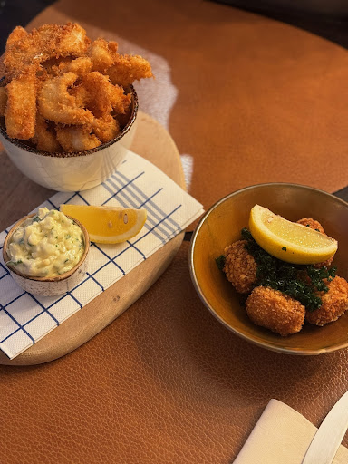 Wij waren nu met een groep en dan is gaan eten totaal anders vind ik dan Je kijkt niet echt rond je bent bezig met de vrienden Op een zonnige dag zoals vandaag was het echt heel warm om binnen te zitten de zon straalde er middenin dus hadden we beter buiten op het terras gebleven De bediening oprecht vriendelijk(een dame die het gewoon is) Wij hadden nogal verschillende gerechten om een groep van 8 te zijn wat op veel plaatsen al niet meer kan(wat ik soms begrijp) Wij hadden van voorgerechten oesters , vissoep , goudgekleurde garnaalkroketten En de hoofdgerechten mossels ,americain , slaatje met gepaneerde vis ,suggestie burrata met geroosterde courgette met gerookte hesp , Kabeljauw Allemaal verse producten Kleine kaart Kindvriendelijk zou ik nee zeggen Traiteur naast het restaurant van de zaak zelf Toilet trap naar beneden dus voor iemand in...