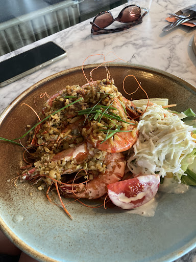 Les gambas avaient une belle présentation, mais elles étaient immangeables car elles avaient été trop cuites, étant très sèches malgré la sauce. Mon amie n'a pas pu terminer son plat.