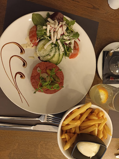 We hebben niet al te slecht gegeten.de garnaalkroketten waren rijkelijk gevuld en de stoverij was ,hoewel klein, wel lekker. We hebben er het ongeluk gehad dat de serveerster het glas bier van onze buurman liet vallen en dit viel voornamelijk op mij.