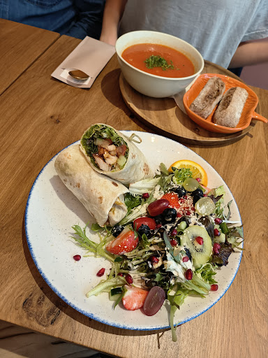 Though there's nothing wrong with the flavour or freshness of the ingredients here, the prices are quite shocking, even for hip 2023 standards. Despite the sympathetic staff, the place caters a bit too eagerly to Insta-greedy tourists with too much to spend on tasty but rather simple food served with a bit too much pretense. Vegetarian/vegan options are surprisingly repetitive and commonplace for a restaurant with otherwise quite eccentric menu options. Too bad the "kleine hongertje" breakfast options were not available after 11.30am. A cute place, but really inexplicably unaffordable, which...