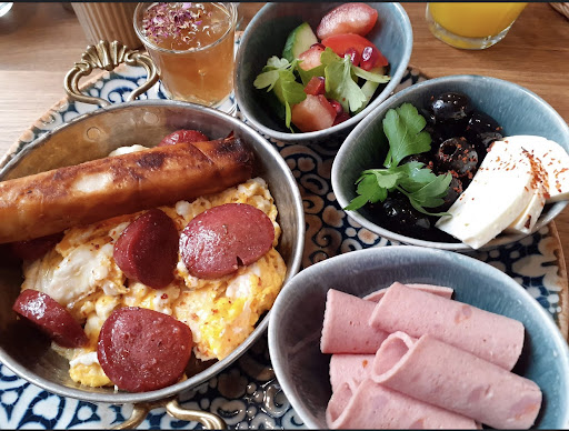 L'attente : Nous avons attendu quasiment une heure pour avoir le petit déjeuner (deux menus turcs) alors que nous étions la deuxième table à être arrivée, à l'ouverture. Cette attente est d'autant plus incompréhensible que seuls trois éléments du menus étaient chauds : le halloumi, le feuilleté végétarien et l'omelette. Les boissons elles, sont venues plus vites. Néanmoins, ceux arrivés après nous ont attendu longtemps pour les boissons. Il y a sans doute ici un gros problème d'organisation. SI les préparatifs pour le service commencent en même temps que l'ouverture du restaurant ou juste un peu avant seulement, cela ne peut pas fonctionner. Nous en avons fait les frais.