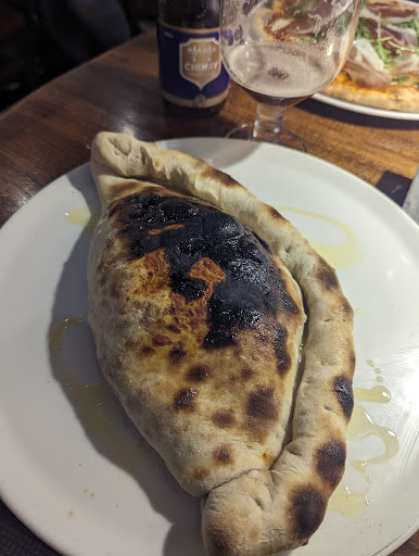 Nous avons commandé la calzone et une de leurs "pizzas spéciales". La calzone : brûlée (pas une exagération), peu ou pas de fromage, champignons pas assez cuits, extérieur détrempé. Le serveur a pensé qu'il pourrait rapidement le glacer dans de l'huile d'olive pour sauver son état manifestement irrécupérable. La pizza : chargée d'huile, un peu de sauce pitoyable, pùte feuilletée - sans saveur.