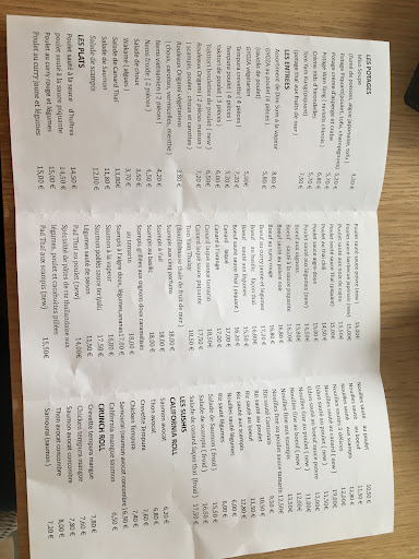 Read moreFranchement pas très bon, et plutôt cher. Un plat qui mélangeait une sauce thaï mais façon chinoise (gras, pas parfumé, grossier, peu de sauce, un poulet presque gluant), avec du riz rond japonais, absolument n'importe quoi. Extrêmement décevant, pour moi un des asiatiques le moins...