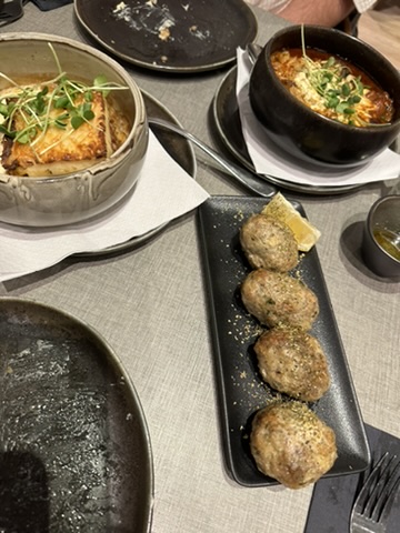 Service assez lent pour les plat principaux si on peut appeler cela des plats. Je comprends bien le concept de mezze qu'on partage mais pour moi le prix ne correspond pas du tout à la quantité. C'est bien simple c'est le double de ce que ca devrait coûter. Tarif vraiment scandaleux !!! 10 euros une petite coupole de mezze froid (tzatskiki ou hummus) qui est a peine plus grand qu'une petite coupole pour y mettre de la mayonnaise. A ce prix là j'ai quasi le triple ou quadruple de quantité aux libanais juste à côté. 12 euros pour 2 pates feuilleté au fromage. On reçoit 2 carrés plus petit qu'un sous verre. Concernant les mezze chaud il y a rien du tout à côté. Tout est à payé en supplément. Je crois que la seule salade possible est à 13 euros. 7 euros pour 6/7 demi pomme terres dure comme de la pierre et froid au milieu. 14 euros gyros, un bol avec juste de la viande comme dans un kebab. Malheureusement pas spécialement bon. 15 euros pour 4 petites boulettes sans rien. 14/16 euros pour des macaronis pour mon fils dont la taille en effet correspond car on pouvait quasiment compter le nombre de macaroni, une dizaine beaucoup trop cuite. La seule chose positive est le pain à volonté qui à mon avis est fait exprès pour compenser le peu d'aliment dans les plats. Les enfants se sont bien sûr rempli de pain qui est juste du pain pitta réchauffer sans rien dessus. Etonné du nombre de gens dans le restaurant et donc assez lent mais les serveurs sont très attentionnés pour vous. Second resto qui demande du cash et pas de carte, je me demande si la machine est vraiment en panne.