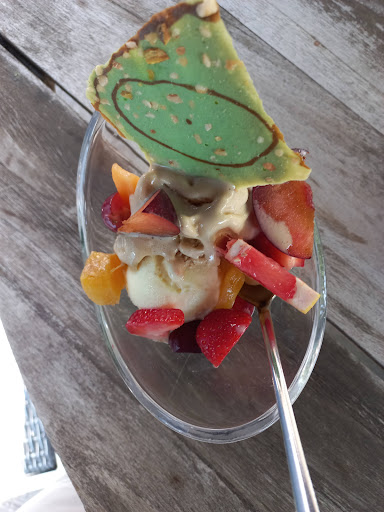 We kwamen met drie personen voor een pannenkoek met ijs. De pannenkoeken waren groot, maar helaas veel te dik, niet doorbakken en helemaal niet luchtig – het leek meer op een taaie leren lap dan een lekkere traktatie. Ook het ijs dat erbij geserveerd werd, had weinig smaak.