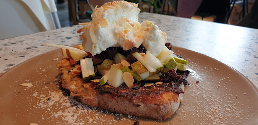 Read moreMijn verjaardag op een ontgoochelde manier gestart. Op voorhand gereserveerd en aangegeven hoe erg ik ernaar uitkeek. Reservatie om 9u15, om 9u25 waren mijn genodigden daar en was de tafel nog niet klaar. Zo’n mooie zaak met leuke zitplaatsen, op voorhand gereserveerd en dan toch op een plek zitten waar je geen leuke foto’s kan maken. We zaten met 5 aan de uiteinde van de grote tafel (8p) naast de keuken, waar het personeel constant glazen en bestek haalde en aan de andere uiteinde van onze tafel was de kassa met papiertjes overal verspreid en waar steeds mensen kwamen betalen. Gezellig was dit niet. Zelf wat leuke “birthday” prikkertjes op tafel gelegd zodat het toch ietwat feestelijk was.