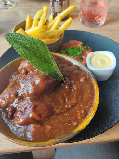 Read moreWat een geweldige plek om te eten, de oude brouwerij van Liefmans aan de Schelde! Maar dan die kaart vol heerlijkheden en deelgerechten, natuurlijk met een rijke collectie aan Liefmans bieren en Roman limonades. Komend vanuit Delft, Nederland, had ik voor een bezoek aan Oudenaarde dit voortreffelijke restaurant gegoogeld. En alles wat men er over schreef klopte! Het personeel is zeer attent en behulpzaam. Ik wilde vanuit de auto per mobiel reserveren, maar dat lukte niet direct, werd ik door Martin terug gebeld en alles kwam in orde. Daar aangekomen, zaten we in de volle zon, en men zette op onze vraag de tafel in de schaduw. Maar je komt om te eten 😉. Voorafjes bij het bier en de limo waren heerlijk, geroosterde paprika en geroosterd brood. Toen Martin zag, dat we nog wel paprikasmeersel hadden, maar geen brood, vulde hij meteen het brood aan. Als hoofdgerecht een zeer malse ribeye en de rest varkenswangetjes in oud bruin, dus zoetig. Werd er direct peper en zout op tafel gezet. Heerlijk en enorme porties! Er kon nog wel een dessert bij, crême brulée. Heb je ooit wel eens een crême zien bruléën 🔥? Nou, hier wordt het zeer verrassend zo gepresenteerd! Het was een echte...